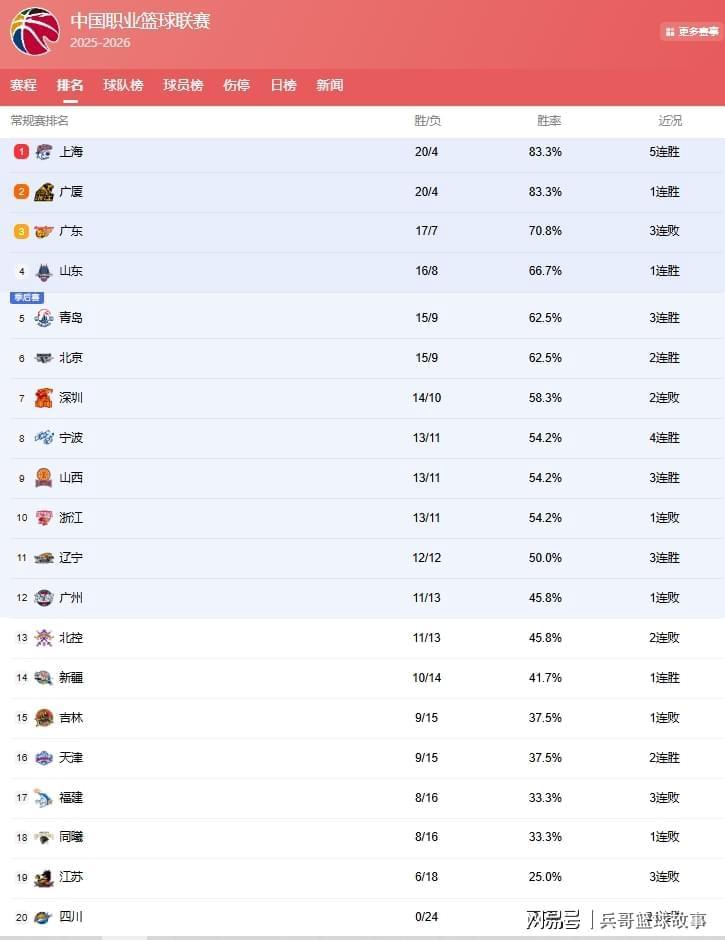九游体育APP下载-CBA最新排名!上海反超广厦登榜首,山东第4北京升第6,辽宁第11